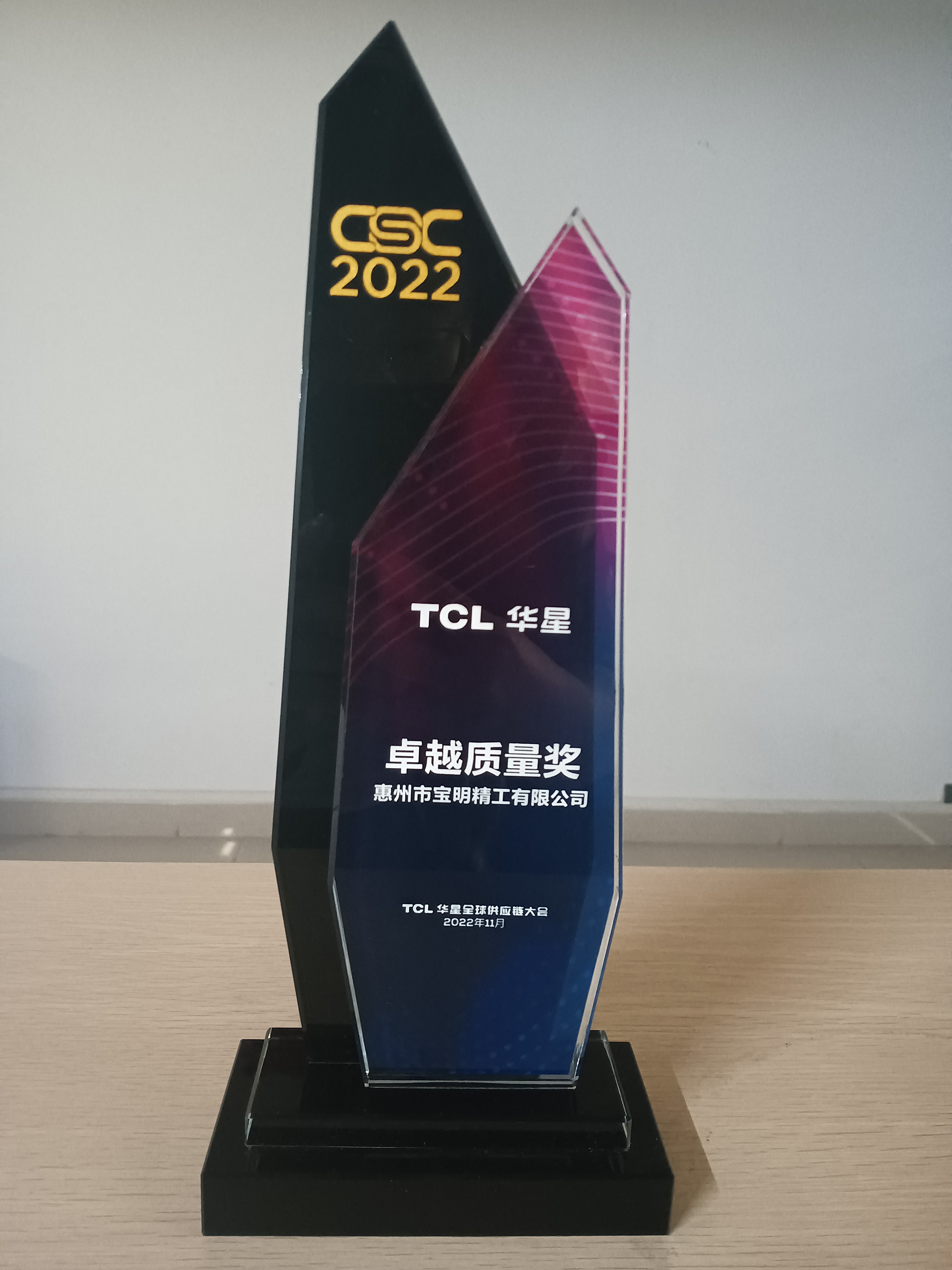 寶明精工榮獲TCL華星“卓越質(zhì)量獎(jiǎng)”
